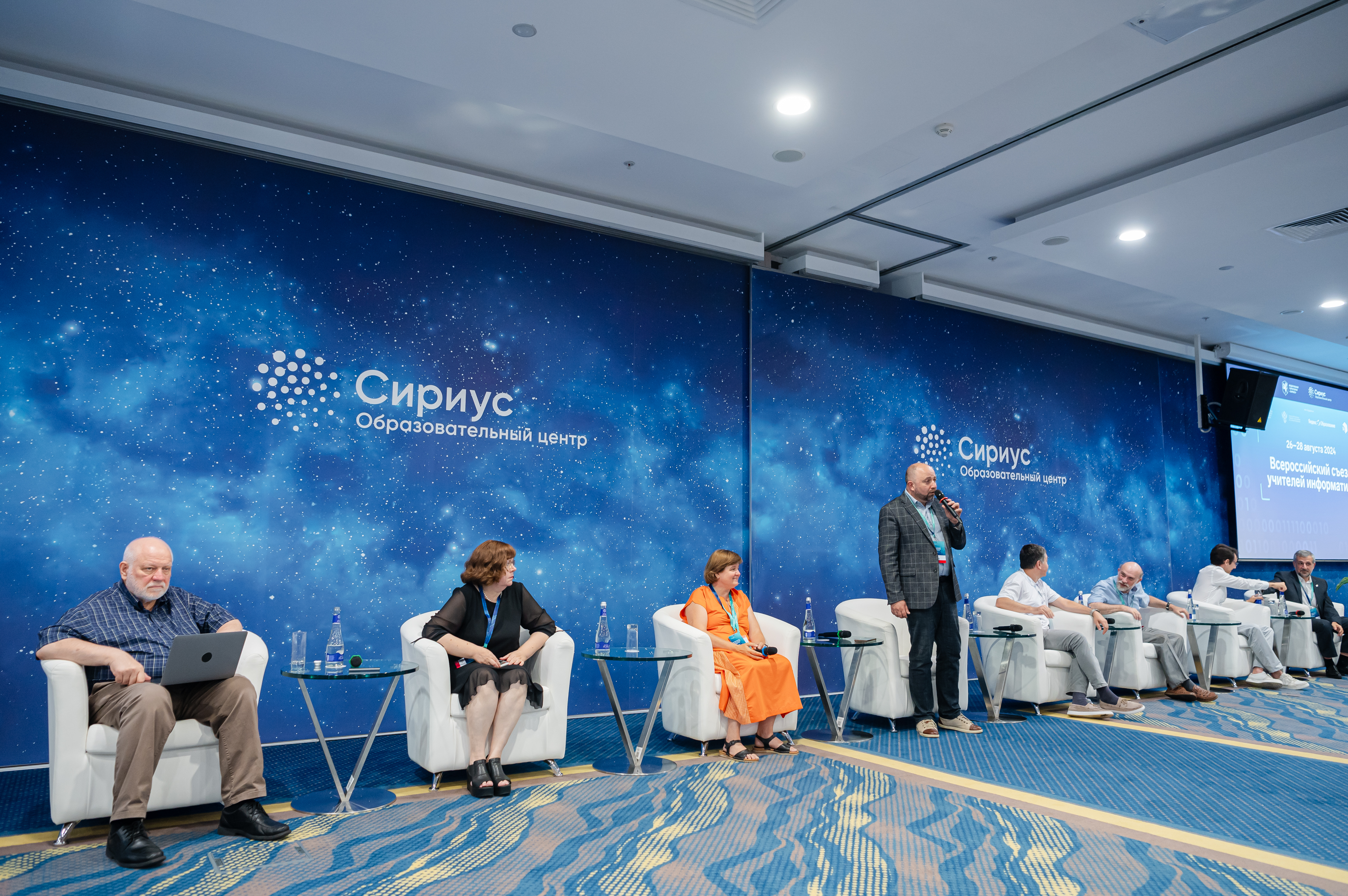 26-28 августа на базе образовательного центра «Сириус» проходил Всероссийский съезд учителей информатики, который собрал очно более 300 участников из 71 региона России и несколько тысяч зрителей дистанционно, среди которых был и учитель информатики Школы 800 Глеб Шалимов. Главными темами съезда стали передовые методики преподавания информатики в школьном курсе, вопросы проведения ЕГЭ, перспективы обучения программированию в школах, изучение и применение искусственного интеллекта, повышение квалификации педагогов и многое другое.